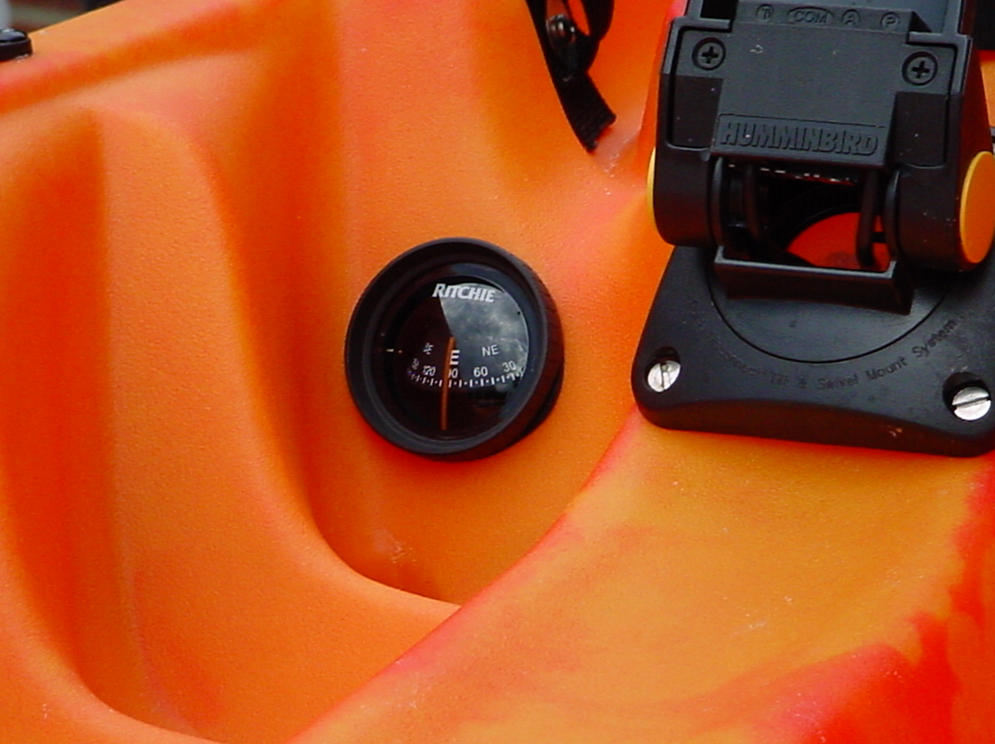 Fitting the Ritchie X-15 to the Ocean Kayak Caper presents a small problem, due to the style of the compass, a flat area of 60 mm, a mounting angle of 35° or less from the vertical plane, which must also be parallel to the centerline of the kayak is required.