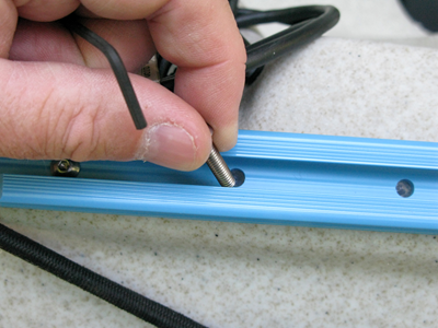 Then we positioned the far end of the track and drilled the second hole, using the track as our guide, dropping in an another Allen Bolt once complete.